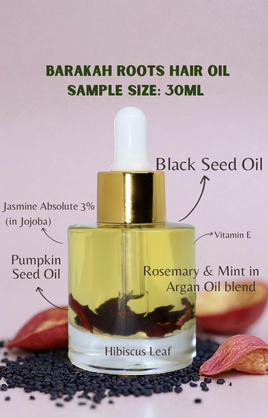 For external use only. Avoid contact with eyes. Discontinue if irritation occurs. Patch test recommended. Natural variations in colour or scent may occur. Not intended to diagnose, treat, or cure disease. Customer accepts responsibility for correct use. Results may vary. Barakah Roots is not liable for misuse or allergic reactions. Seek advice before use during pregnancy, breastfeeding, or on children under 12.